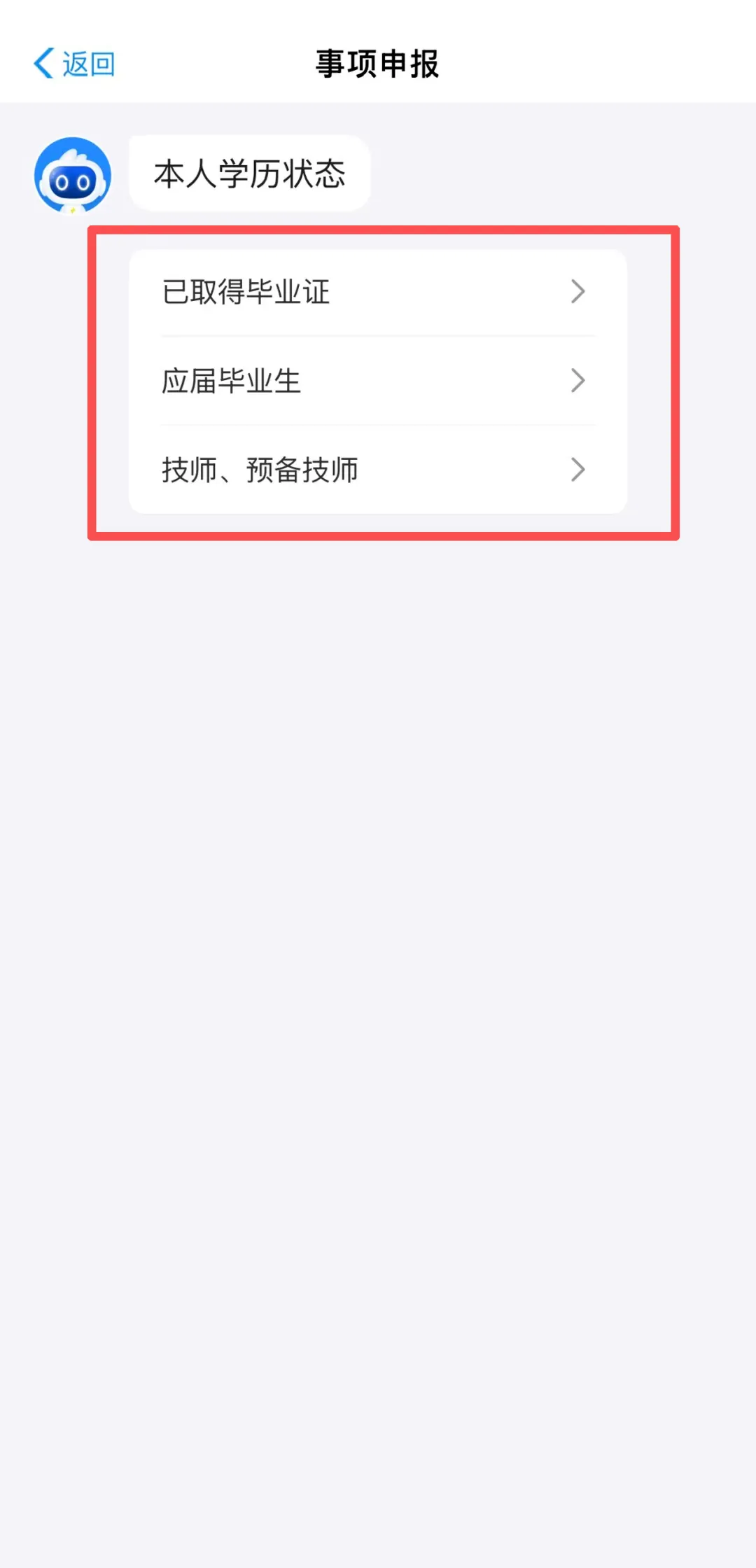 2️⃣如申请人为应届毕业生,未取得毕业证的大四学生,需填写学历信息、毕业时间与预约时间,然后上传学生证(或学生卡)与求职工作证明后,即可提交申请,等待办理结果通知。