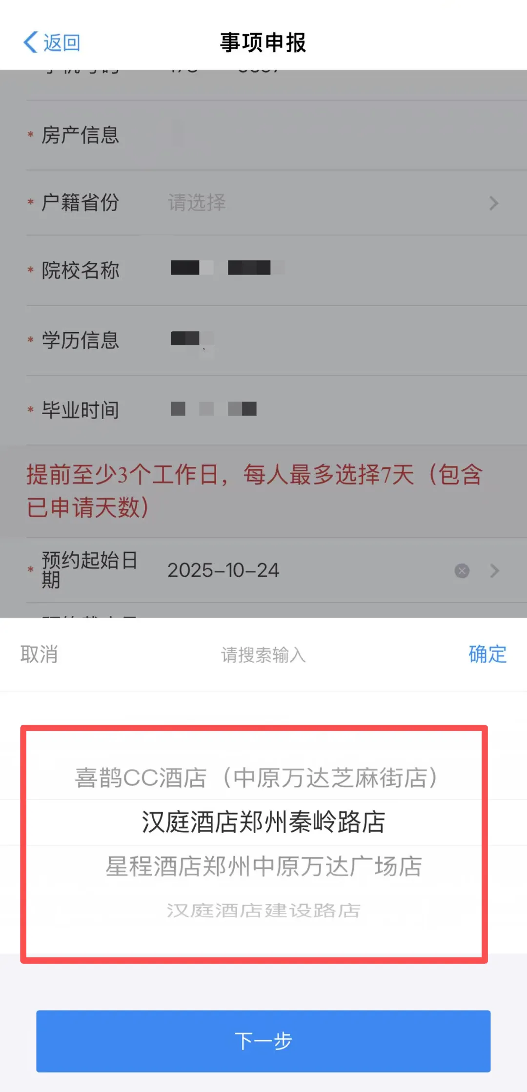 3️⃣提交申请前请确定好申请时间,后台审核通过后将短信通知。
