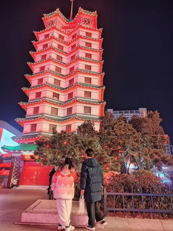 2.10上午哥哥还去社区参加了写对联的公益活动,就练了两幅,愣是被叔叔阿姨爷爷奶奶夸上天,小孩嘴都合不拢了,体验感拉满!下午熬到13点多,终于坐上了去郑州东的火车,俩小时车程,兄妹俩玩烧脑接龙、我刷攻略唠嗑,一晃就到站了。出站从东广场出来,一抬头就是蜜雪冰城总部,那场面直接给我看懵了,全是人,买东西排老长的队,喇叭一直喊,咱也别凑热闹了,跟门口的蜜雪玩偶合了张影就溜了。现在想想巨后悔,河南自然博物馆离火车站超近,当时要是不耽误这功夫,直接去博物馆逛仨小时,再去酒店放东西,时间刚好,结果这馆愣是没去成,小小遗憾一个~打车到酒店,发现这酒店订得太值了!就在紫荆山公园旁边,楼下就是推荐的虢国羊肉汤馆,先点两碗河南烩面垫垫肚子,味道还不错~接着坐两站地铁去二七纪念馆,夜景是真的震撼,妥妥的城市地标,哥哥还一本正经跟妹妹说“拍照严肃点,别笑”,小大人似的。晚上七点整还听到了“东方红”,氛围感拉满。周边小吃街逛了逛,没啥惊喜,全国各地都差不多的味道,随便溜达一圈就回酒店了。俩娃说没吃饱,又点了胡辣汤和油炸韭菜饼,俩人吃得贼香,对了,这酒店必须夸,近两年的新酒店,电视能声音控制,带娃太香了,我终于能歇会儿,俩娃对着电视能玩半天,情绪价值拉满!第二天:河南博物院的惊喜与小败笔,文化之旅初体验