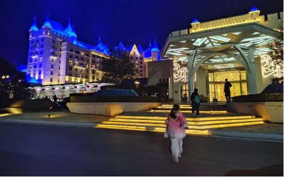 哥哥是个十足的动物迷,从小看动物绘本,每次出游必选动物园,还说以后要去非洲看动物,对动物的喜欢刻在骨子里。我让他提前刷视频看看怎么玩,他还说“提前看了就没惊喜了”,别说,还真被他说中了,未知的快乐才最过瘾!早上在酒店拿了个红薯,我喝了杯咖啡,从早玩到下午三点,我都饿惨了,问俩娃吃不吃东西,俩人头都不抬说不饿,玩起来是真的能忘记一切~晚上七点半看了巡街演出,八点半蹲到了第一排的烟花,漫天烟花炸开的时候,俩娃眼睛都亮了,这画面真的太美好了!看完烟花,俩娃才肯往回走,路过7-11,买了两桶泡面解决晚餐,简单是简单了点,但娃们吃得开心就行。酒店自助餐其实也不错,就是得早去,我们第二天吃的时候,门口排老长队,娃们都等不及了~第四天:动物王国二刷+冰雪世界,娃们学会做取舍