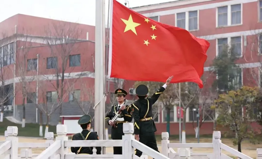 7时整,国旗护卫队迈着铿锵有力的步伐护送国旗入场。伴随着雄壮的《义勇军进行曲》,五星红旗冉冉升起,全体师生肃立行注目礼,齐声高唱国歌。爱国之情在每个人心中激荡,青春的使命感在晨光中升腾。