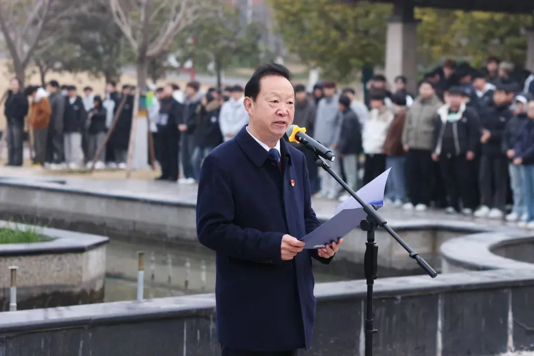 在升国旗仪式上,名誉校长、党委副书记徐洪波为全体师生讲授开学第一课。他将祖国的强盛与青年的成长紧密相连,勉励大家脚踏实地,走好“技能成才、技能报国”之路。