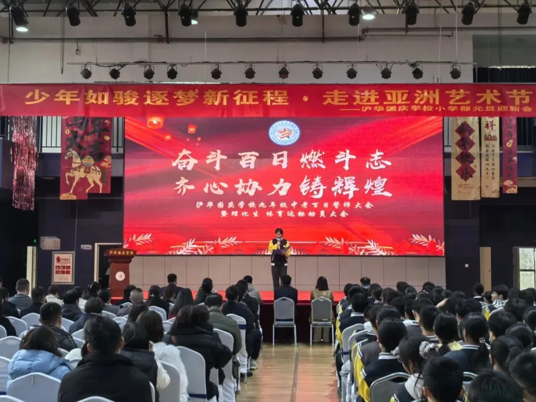 此次誓师大会,不仅为九年级学子注入了强大的精神动力,更凝聚了家校师生的磅礴力量。未来一百天,沪华国庆学校全体师生将同心同行、全力以赴,以拼搏铸就梦想,以奋斗迎接中考胜利,再创育人新佳绩!