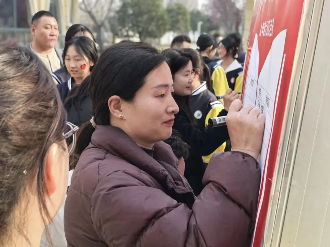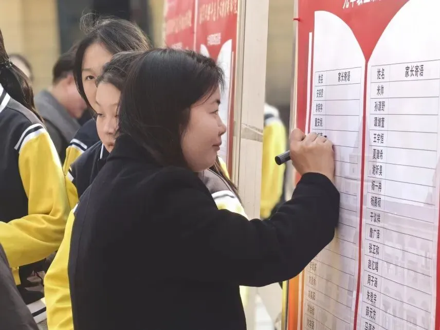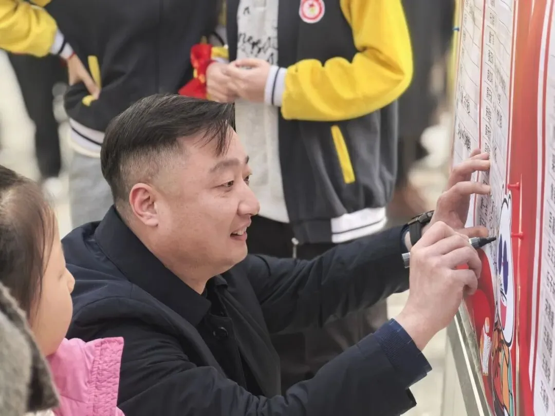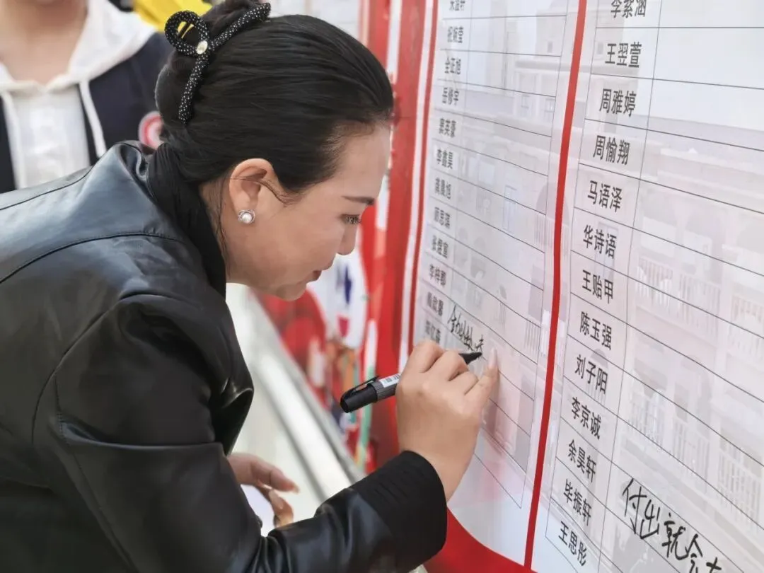 家长们有序入校,驻足签名墙前郑重落笔,一笔一画写下对孩子的殷殷期盼与深情祝福;