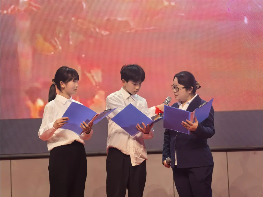 随后,九年级语文组带领学生代表共同朗诵《奋斗的青春》,铿锵誓言、激昂旋律,尽显少年追梦的昂扬姿态。