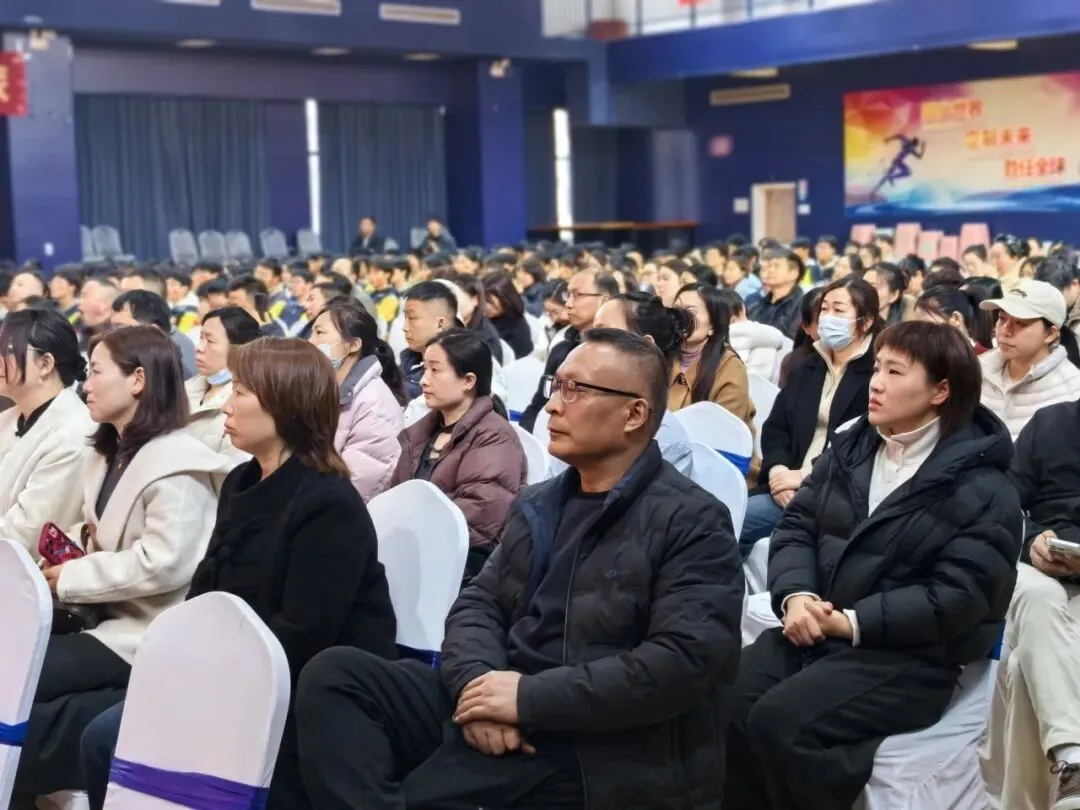 大会最后,时运峰校长以 “百日誓师铸辉煌,稳扎稳打胜中考” 为主题作重要讲话。时校长强调,中考百日冲刺,贵在坚持、重在扎实,希望全体学子坚定目标、沉心静气,把每一堂课、每一次练习、每一项训练都做到极致;叮嘱大家重视理化生实验与体育达标考试,夯实基础、规范细节、稳步提升。时校长鼓励全体师生以奋斗为笔、以汗水为墨,家校同心、师生同行,用百日积累换取中考胜利,用扎实拼搏铸就人生辉煌。