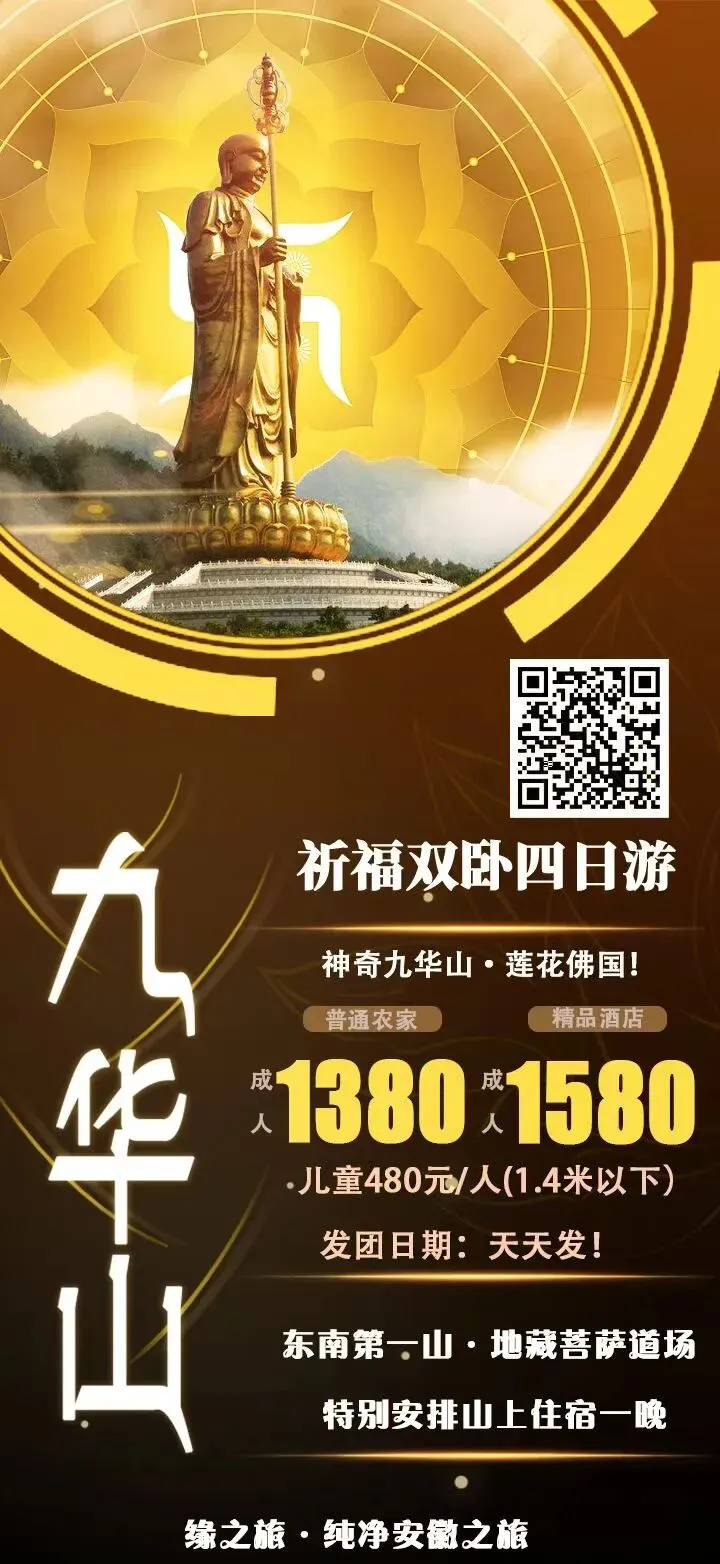 【祈福九华山】火车双卧四日游,郑州起止,天天发团,每位1380元,安徽九华山祈福之旅