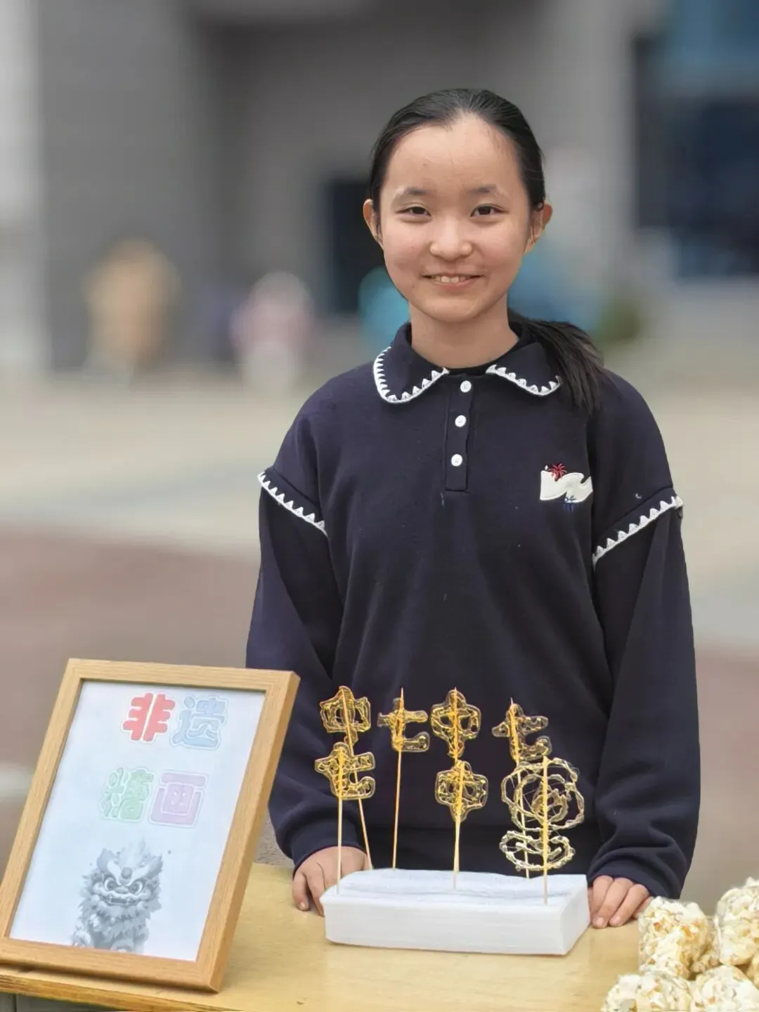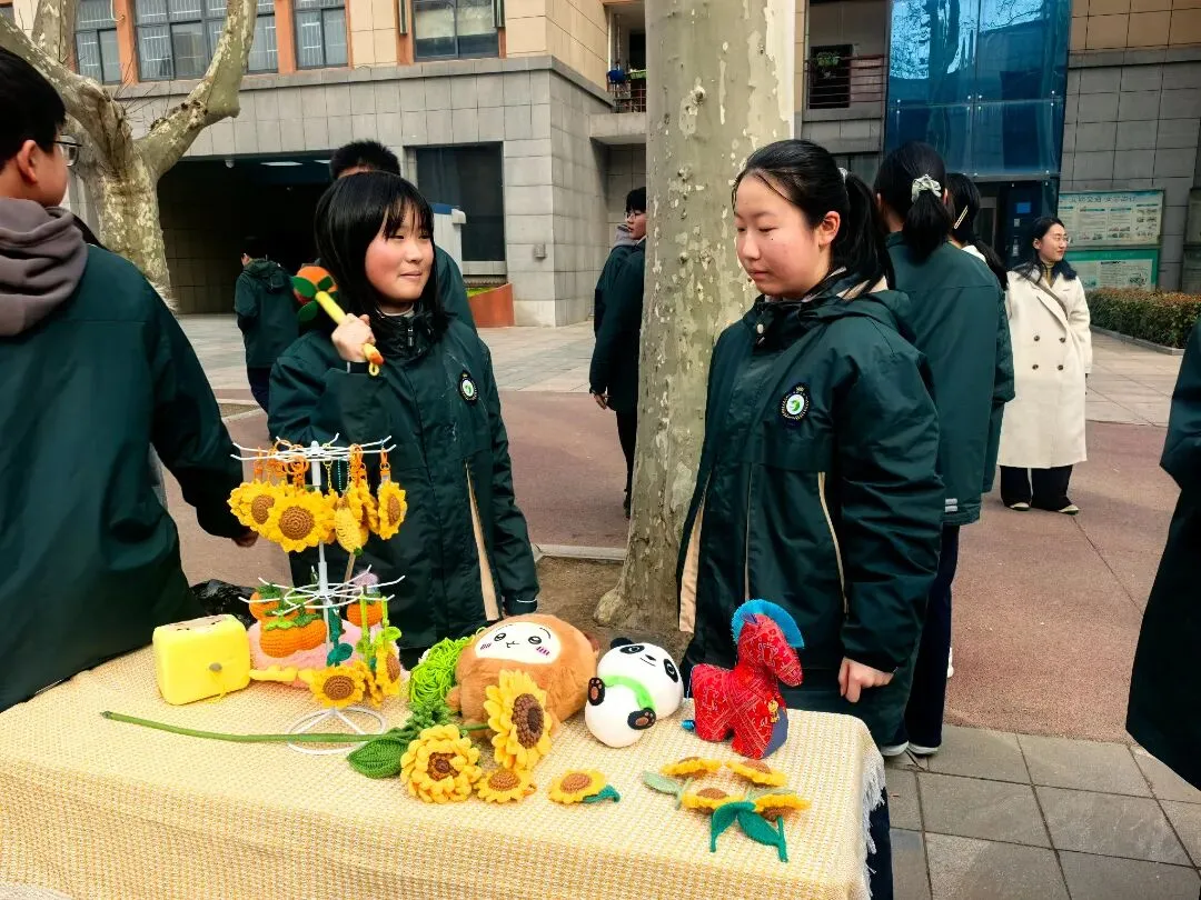 手工文创区创意涌动,活力四射。扭扭棒制作的向日葵栩栩如生,仿佛能感受到阳光的温暖;手工编织的挂件精致细腻,每一处都彰显着同学们的匠心独运;精美的手绘作品色彩斑斓,让人不禁为同学们的才华所赞叹。同学们用双手将普通材料变成一件件艺术品,展现了惊人的创造力与动手能力。