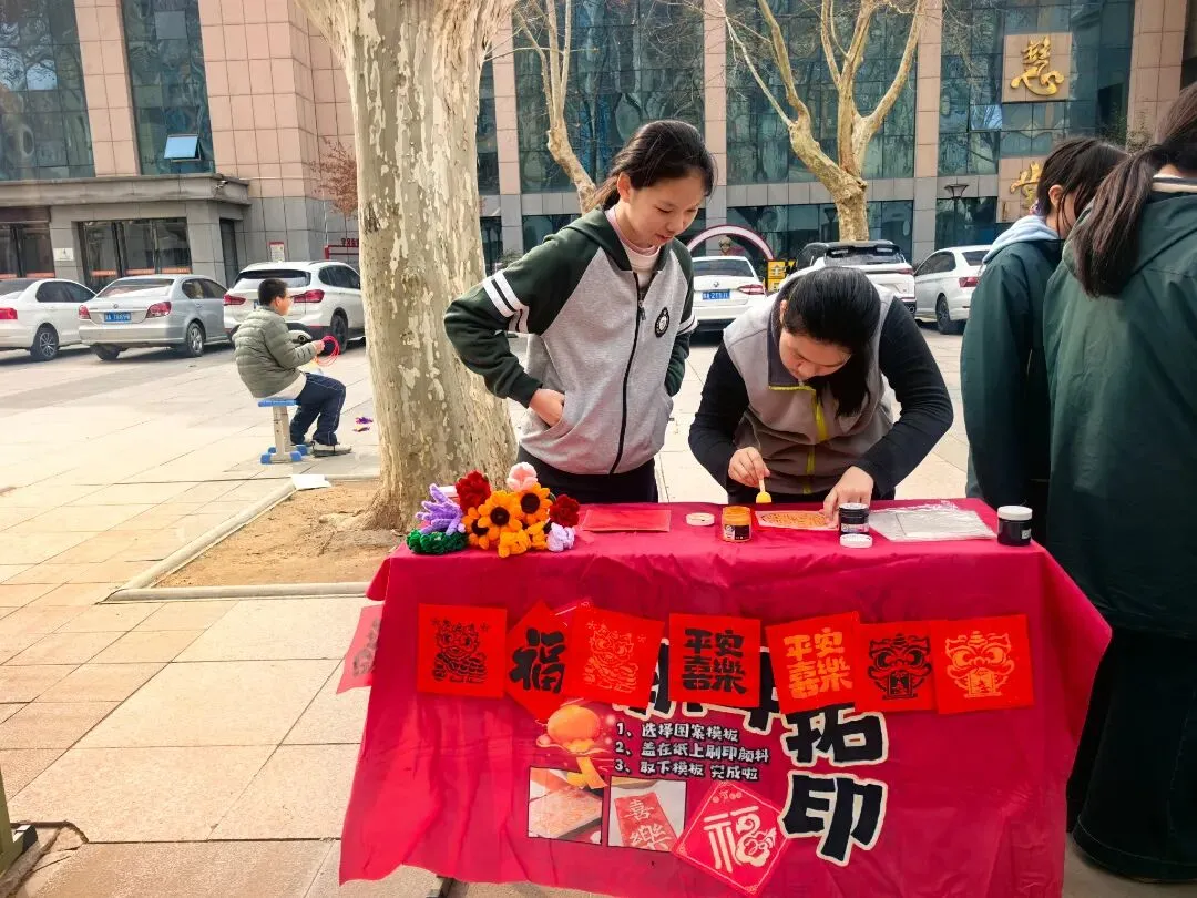 庙会现场设置了传统文化体验区、手工文创区、趣味互动区三大板块,每个板块各具特色,吸引了众多师生驻足参与。