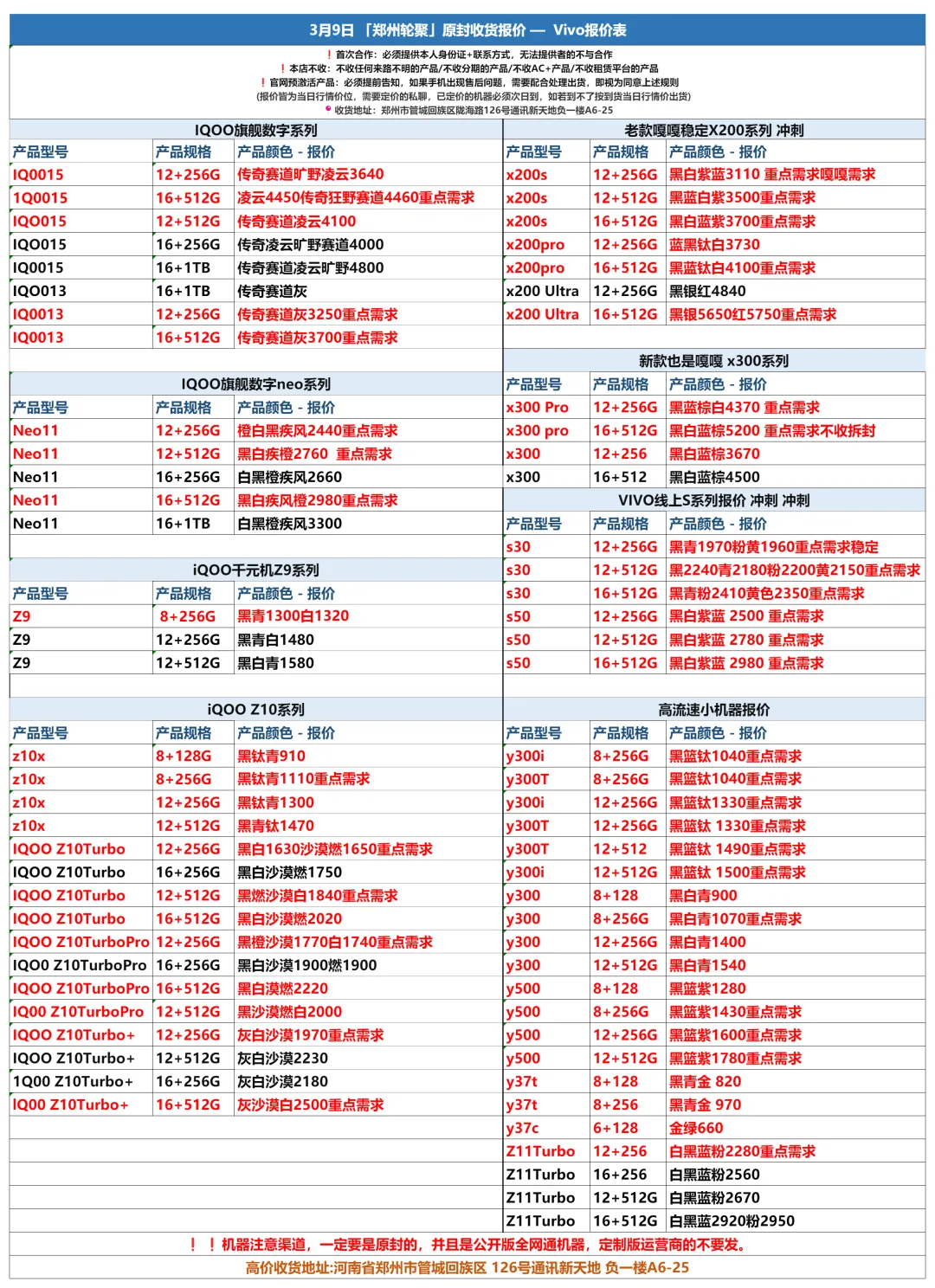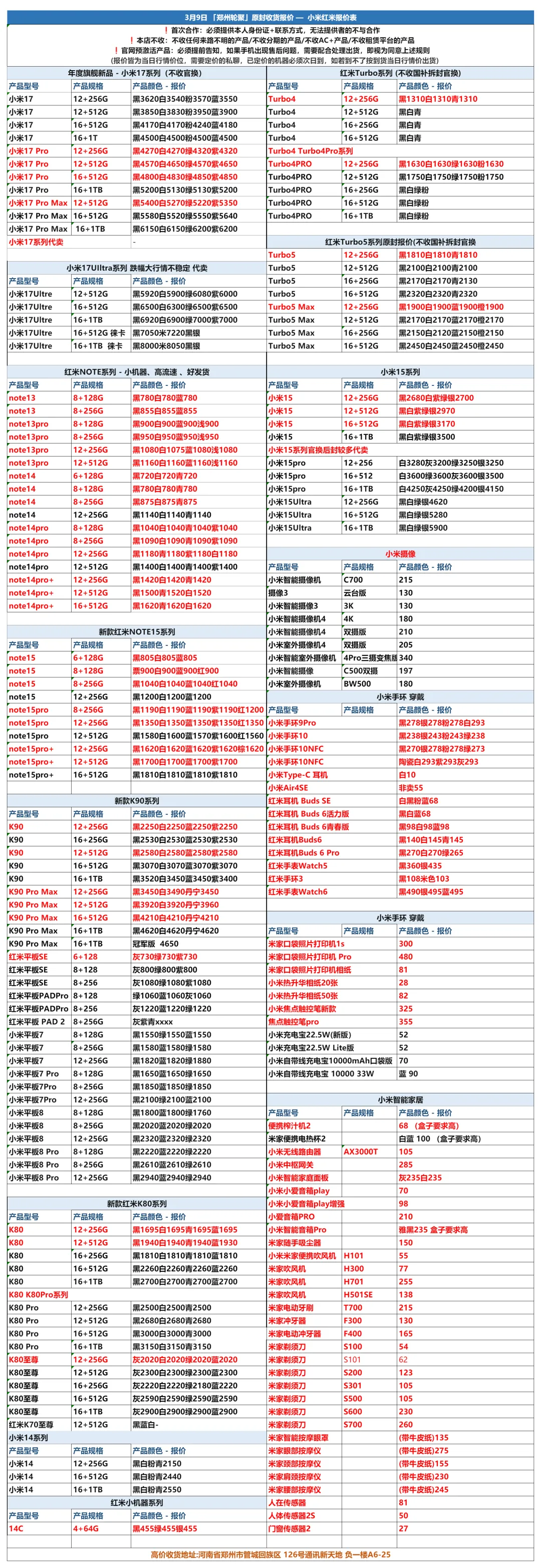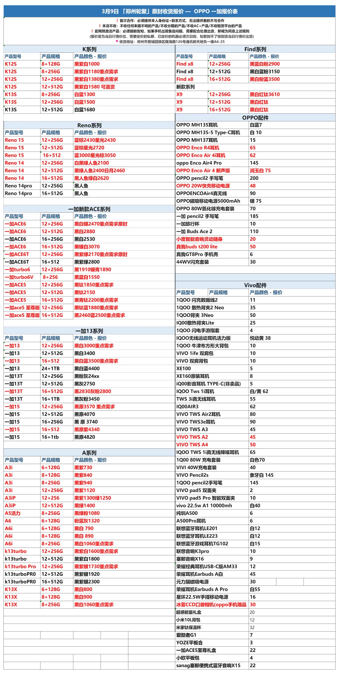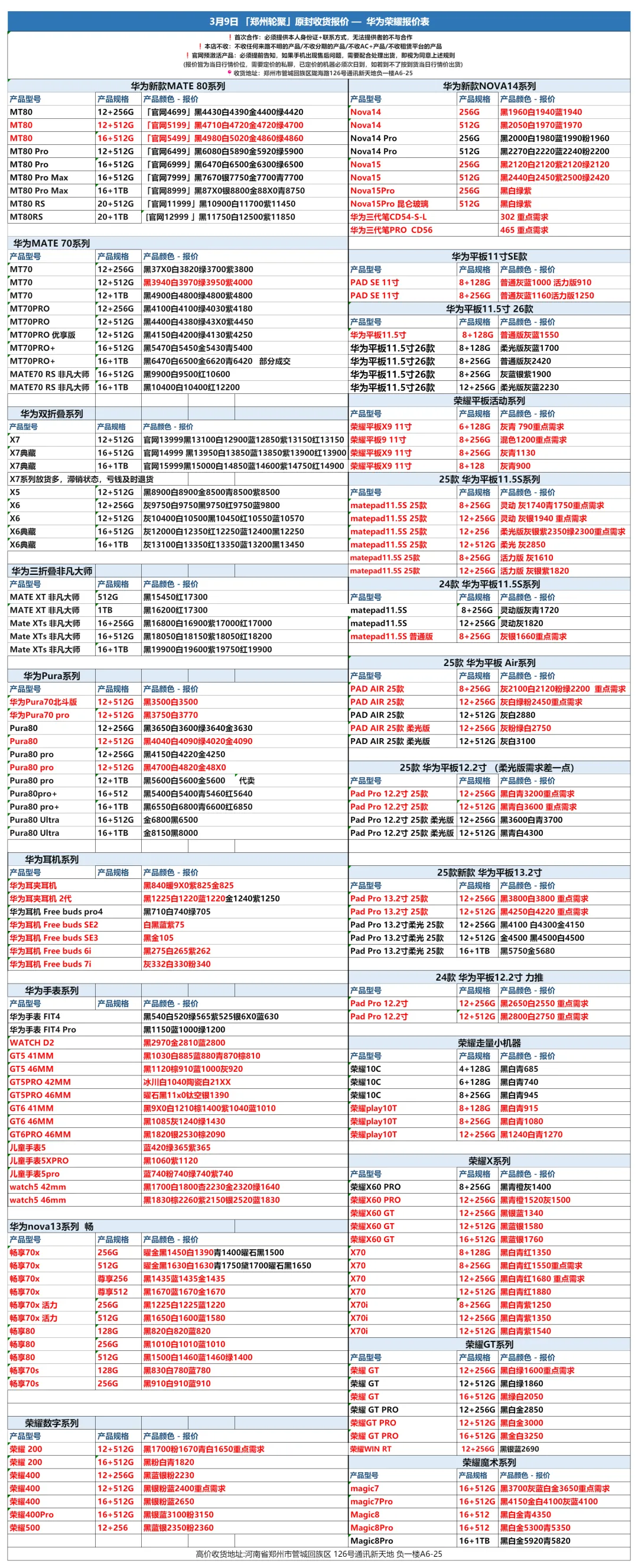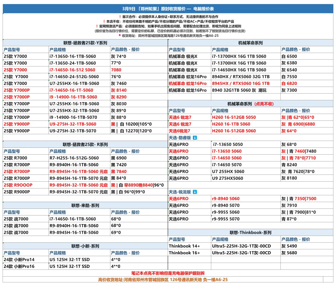 郑州轮聚通讯 2026年3.9日数码报价更新