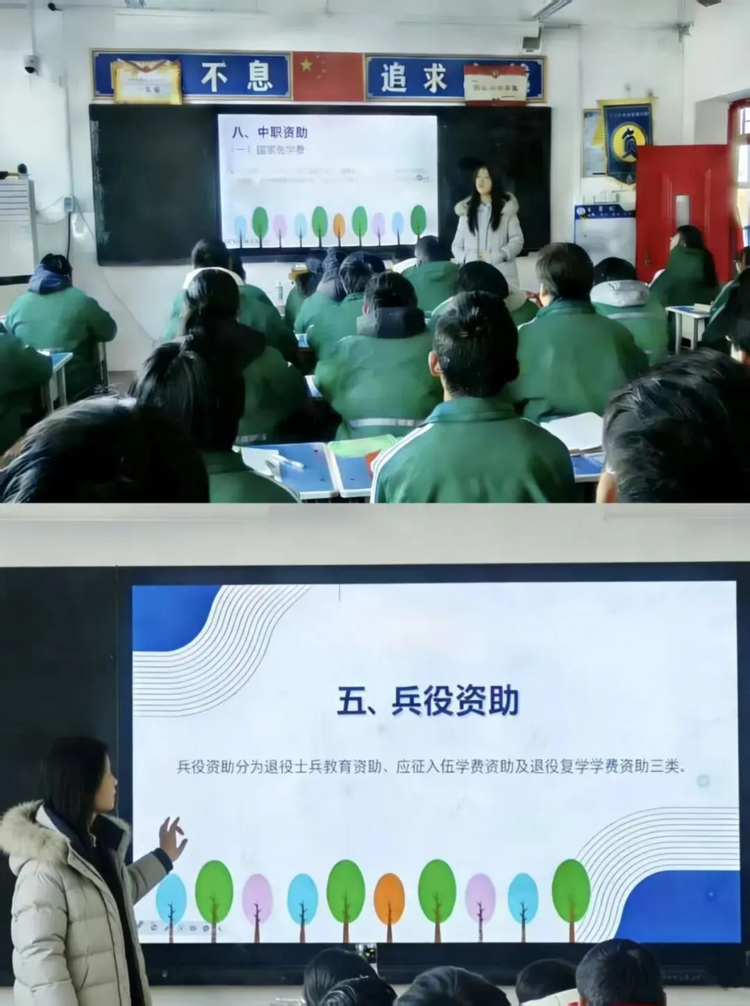 宣讲现场,励志学子结合自身求学经历,用鲜活案例解读国家奖助学金、助学贷款、绿色通道等核心政策,详细解答申请条件、办理流程等关键问题,以青春之声鼓励学弟学妹们坚定理想、潜心向学,勇敢追逐求学梦想。