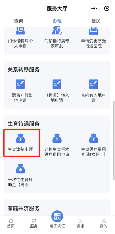 二、异地医院生产,产后188天后,微信搜索河南医保,点击我要办,进入我要办页面后,往下滑,点击生育津贴申领,按照提示进行信息填写上传即可申请。