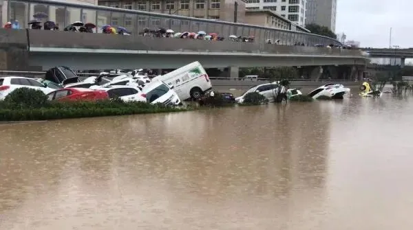 车子被冲得一直在打转。后面一辆车里的大哥喊,“赶紧出来”。我至少推了五六次,才把车门打开。推开车门后,水第一时间就灌进来了。大哥又对我喊:“站在车门上”。