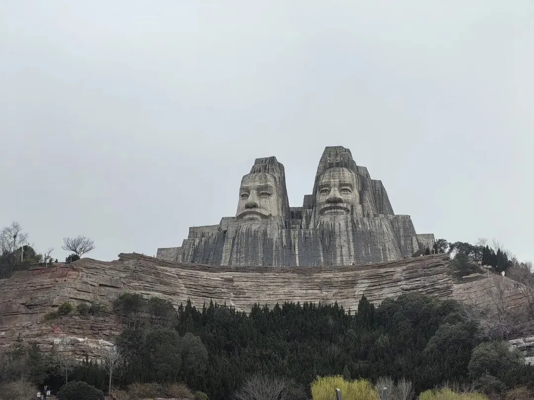 入园时,朝阳正好,拾级而上,高大的炎黄二帝塑像骤然撞入眼帘——背倚邙山黄土,面朝黄河碧波,眉峰攒着华夏初开的光芒,目光凝着文明绵延的坚定 。山壁下,范曾手书的《炎黄赋》碑刻静立,485字刻尽了先祖开拓的峥嵘 。