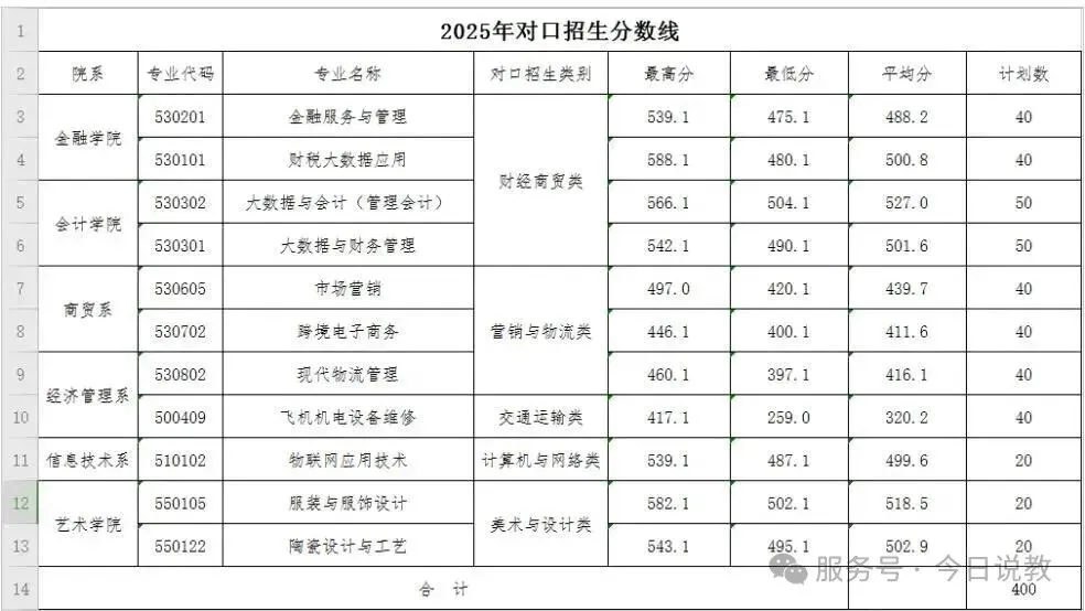 郑州财税金融职业学院2026年对口升学录取参考分数线