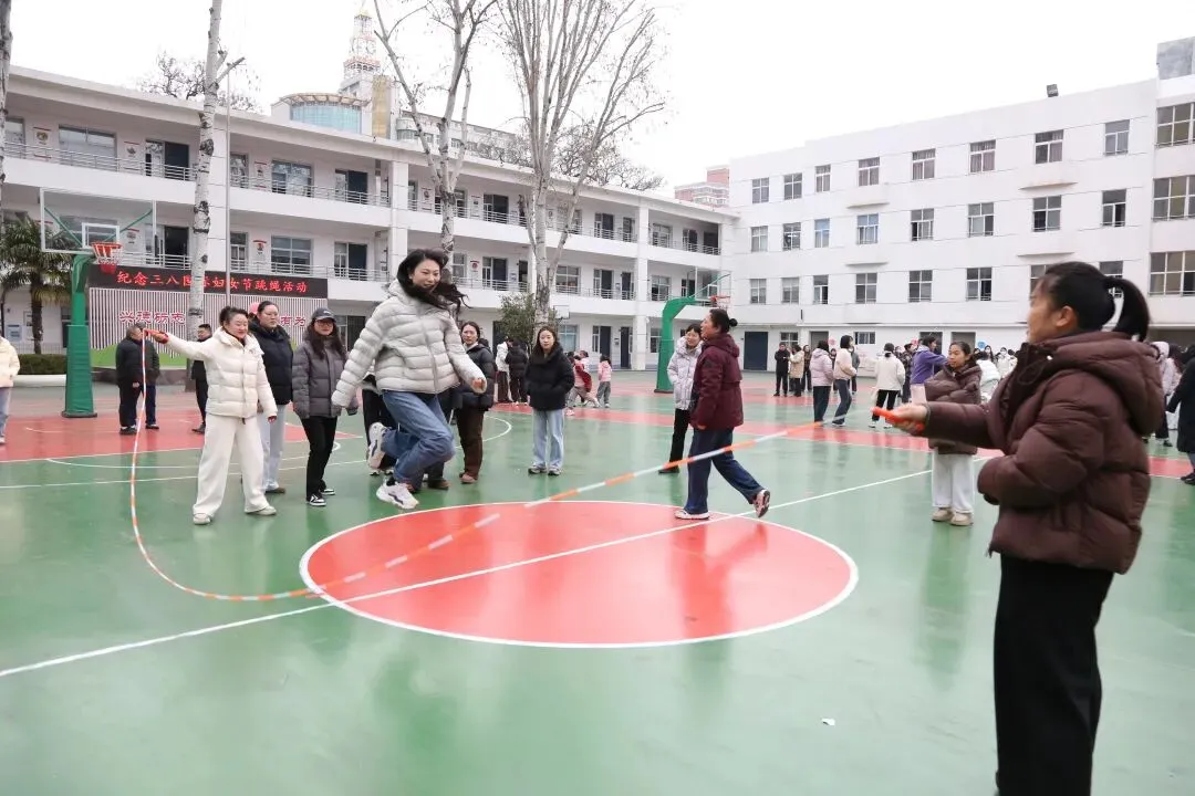 阳春三月,春风送暖。为纪念第116个“三八”国际妇女节,丰富女教职工的业余文化生活,展现巾帼风采,3月6日下午,郑州市金水区文化路第二小学工会在学校操场精心组织了一场别开生面的跳大绳比赛。全体女教师以工会组为单位参加了此次活动,男教师们则主动承担起裁判、计数、摇绳等各项服务工作,以实际行动向辛勤耕耘在教学一线的女同胞们致以节日的问候。