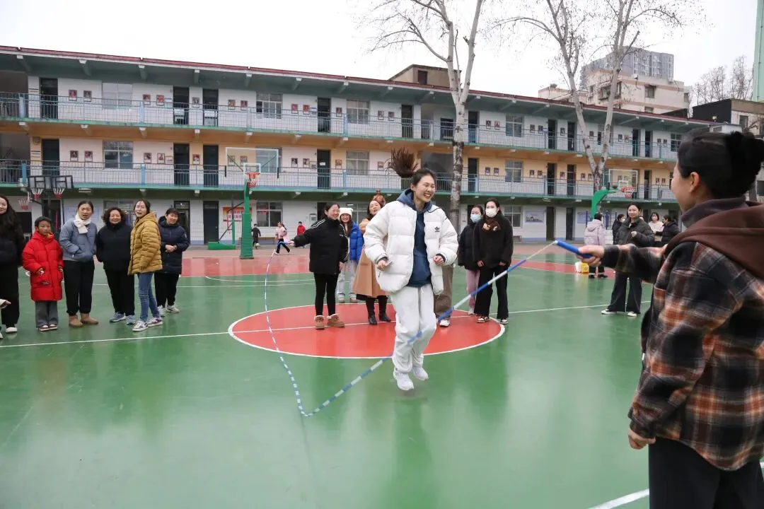 整个活动过程充满了欢声笑语,老师们在紧张的工作之余放松了身心,锻炼了身体,加深了彼此之间的情谊。一根长长的跳绳,不仅跳出了健康与活力,更连接起了全体教职工团结和谐的心。