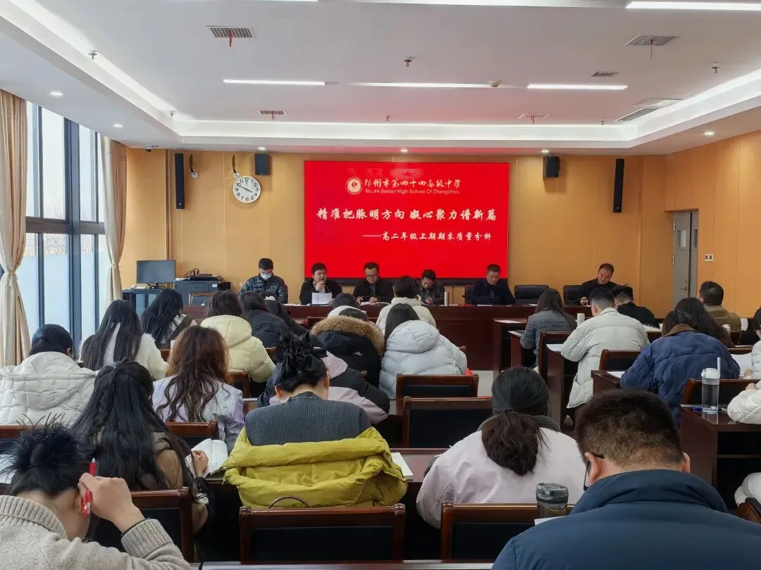 为复盘上学期期末学情、梳理教学得失,明晰新学期教学方向、凝聚育人合力,3月6日,郑州市第四十四高级中学召开高二年级期末质量分析会。学校领导班子及高二年级全体教师齐聚一堂,共研教学痛点、共商提质良策,会议由党政办公室副主任、高二年级长齐海龙主持。