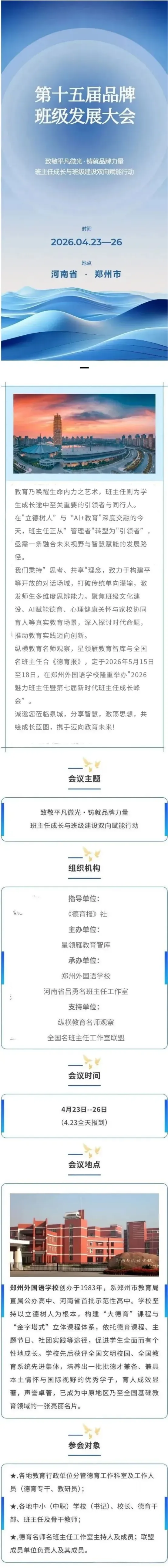 >【4.23-26郑州市】|第十五届品牌班级发展大会