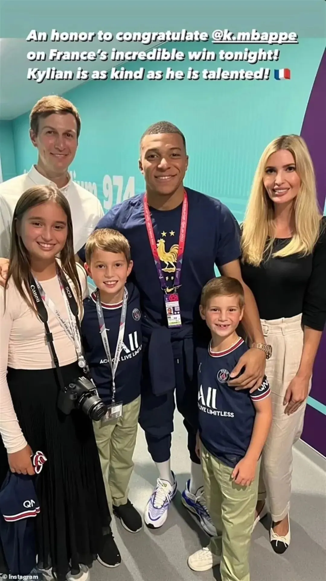 伊万卡和丈夫带着孩子与球星姆巴佩合影