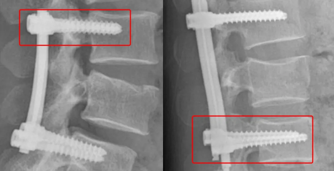 此外,通过术后 X 线上棒的结构也可大致推测是经皮微创植入还是开放植入。经皮微创植入的棒,一般会有一端是尖的,而如果是开放植入的棒,那么两头都是一致的。