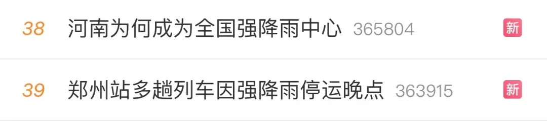“河南大雨”“郑州地铁4号线成水帘洞”