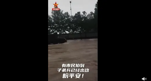 @央视军事 微博消息,今天,河南郑州遭遇极端暴雨灾害,降雨突破历史极值,郑州地铁全线暂停运营,多个小区停电。有市民在街头拍到子弟兵紧急出动的画面。谢谢你们,盼平安!
