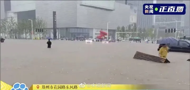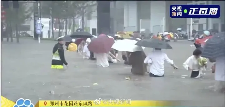 郑州市20日出现大暴雨,局部特大暴雨,导致市区部分道路断行。部分地铁被淹,积水没过腰部。