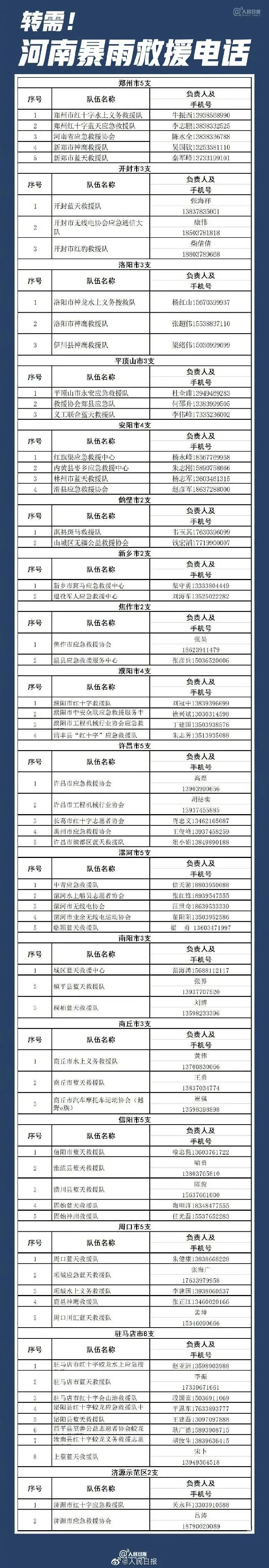 河南多地暴雨致灾,若你身边有人需要紧急救援,请拨打以下电话↓↓急转扩散,愿每个人都平平安安!