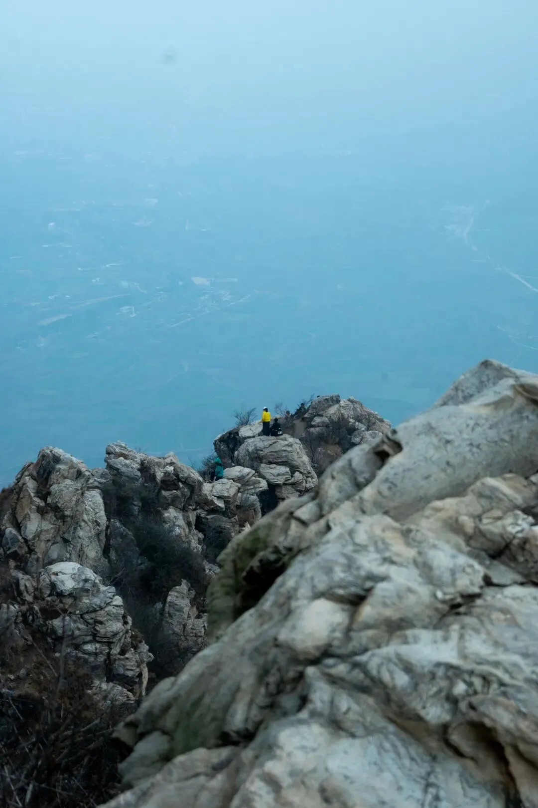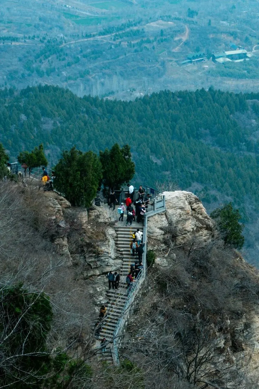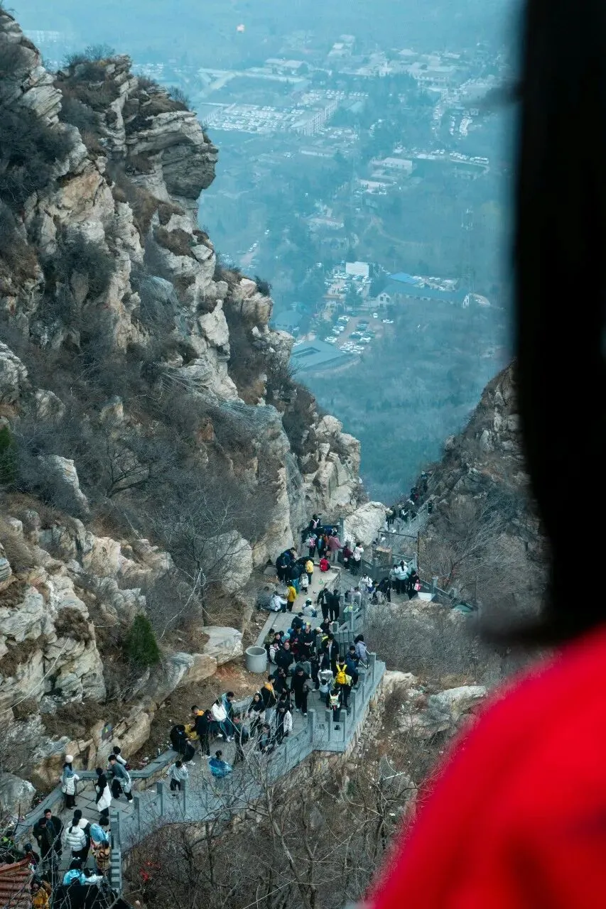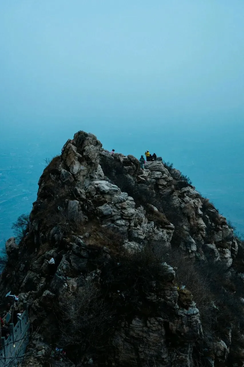 拍摄技巧:低角度仰拍,突出岩石嶙峋感;用人物做比例参照,凸显山势险峻;俯瞰视角拍山下游人,展现 “一览众山小” 的壮阔