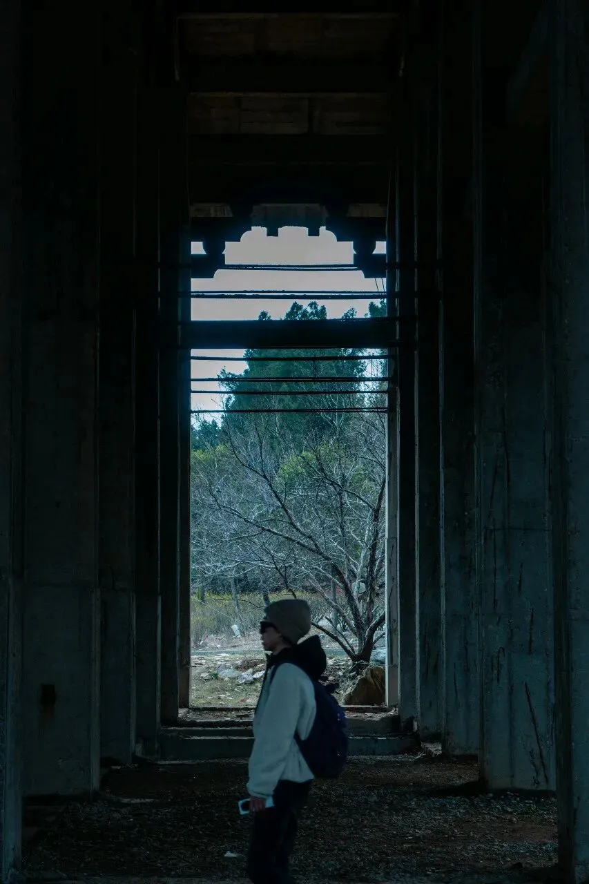 山顶的烂尾建筑藏着另一种美学,冷调蓝绿滤镜 + 框架构图,拍出末日废土风。