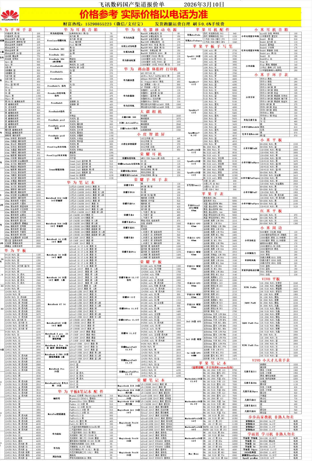 2026年3月10日渠道报价单 关注公众号查看每日报价