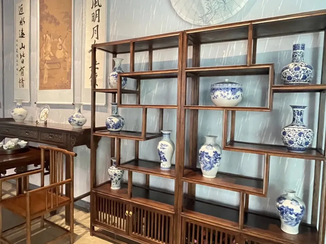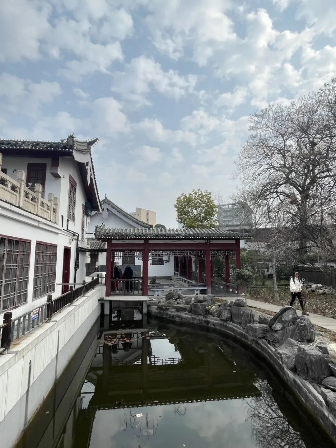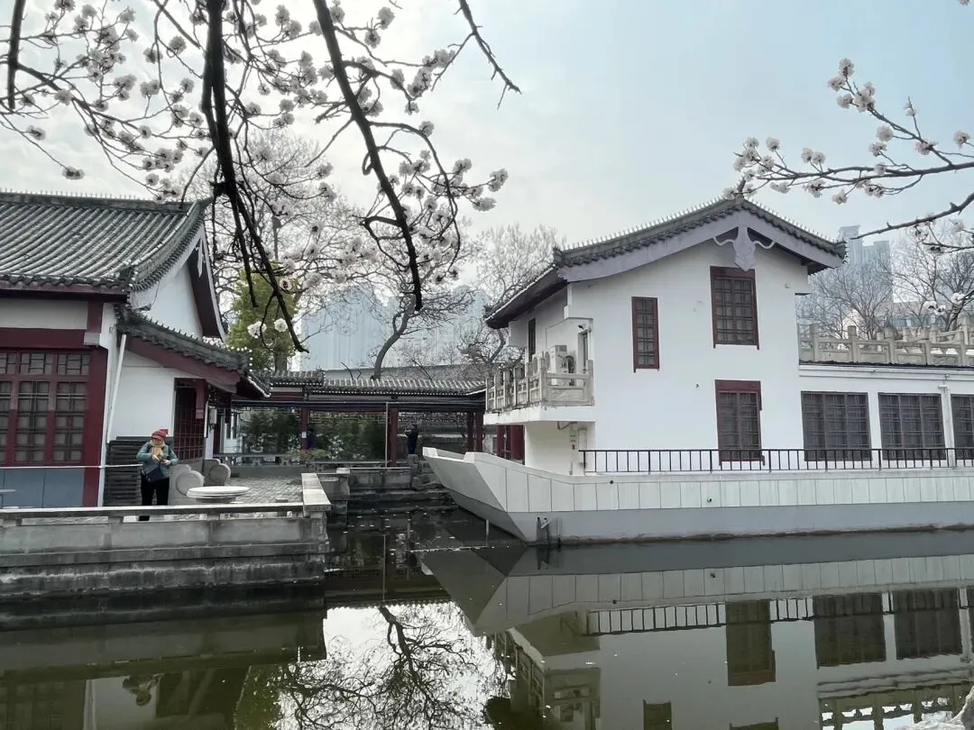 园中溪流、小湖,湖中停泊石舫,假山叠翠,营造出“小江南”意境。