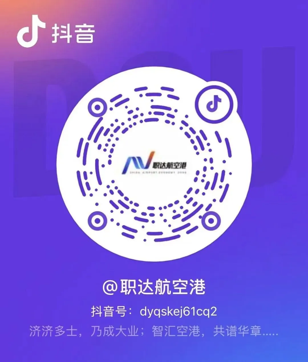 二、参加面试的应聘者,请在抖音APP搜索“职达航空港”或者抖音扫码关注,详细岗位介绍和实时招聘需求进入抖音直播间了解、报名。二维码如下: