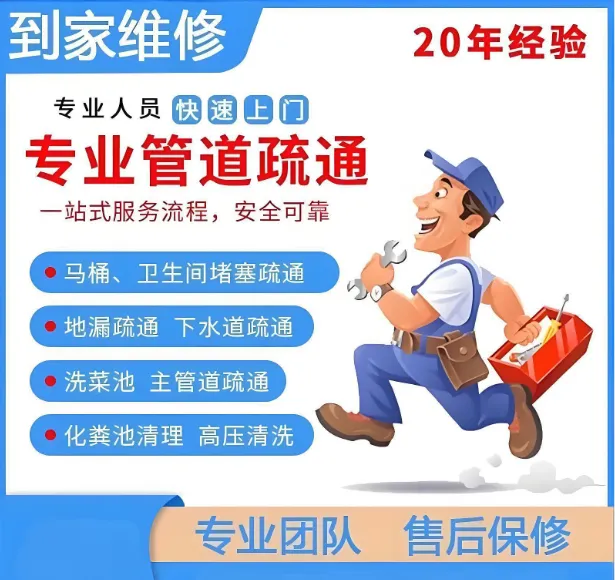 提供24小时同城上门疏通服务,包括下水道疏通、管道清洗、马桶疏通等。师傅经验丰富、上门迅速、价格透明。服务范围涵盖:疏通地漏、抽化粪池、维修水管、安装下水管道、高压清洗、化粪池清理等。