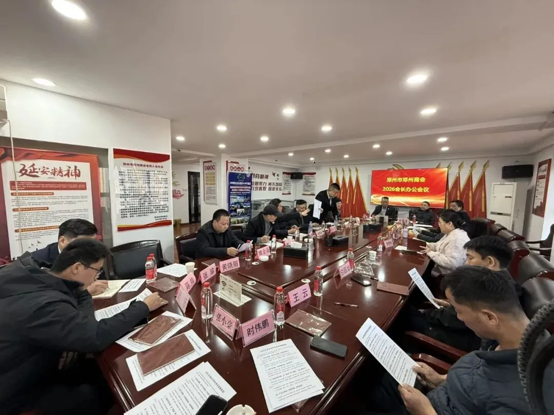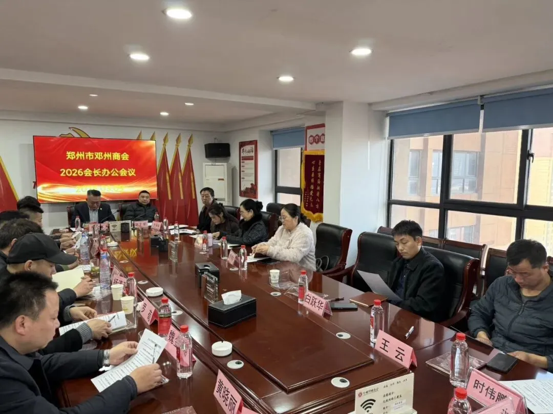 春潮涌动启新程,同心聚力向未来。为统筹部署商会2026年重点工作,凝聚商会核心力量,共商发展大计、破解发展难题,近日,郑州市邓州商会2026年第一次会长办公会议在郑州顺利召开。商会会长张文林、顾问赵丰果、执行会长刘怀娥、张军峰,支部书记周粉玲,常务副会长罗荀、冀朝晖、白跃华,执行秘书长王紫绮、副秘书长李春晓、张乐,办公室主任郑展,监事长李春永、副监事长裴小方,以及副会长郭大海、杨清源、王云、张瑜、黄晓丽、时伟鹏、陈帅、魏金磊、张小豪、李太宇,李继涛,张永、曾祥龙等全体参会人员齐聚一堂,紧扣会议议题,共绘商会高质量发展新蓝图。