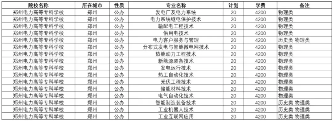 学校已有87年的办学历史,其前身郑县工业职业学校(后更名为河南省立郑州高级工业职业学校)始建于1933年,抗战时期在内乡县赤眉镇办学8年,经历了16次易名。1953年全国院系调整,以郑州高级工业职业学校为基础、将中南五省六所高级工业学校的电机科并入,成立燃料工业部郑州电力学校。其后,历经河南电力学院、郑州电力学院、郑州电力学校等发展阶段,1994年,建立郑州电力高等专科学校。近年来学校获得“河南省电力公司文明单位”、“河南省首批高职高专特色院校”、“河南省省级优质高等职业院校”、“河南省高等职业教育先进单位”、“河南省高校毕业生就业工作优秀单位”等荣誉称号。 学校位置:郑州市郑开大道与雁鸣路交叉口北2公里路西(凤栖街296号) 建校时间:1933年 办学性质:河南省公办高职院校 在校学生:7000人学校类型:理工类学校占地面积:600亩 校区分布:象湖校区 所在城市:郑州市象湖 学校学费:文史类3700元/年、理工类4200元/年、电力类:4600元/年,中外合办:15000元/年。 学校住宿费:6人间900元/年、4人间1000元/年。 高中生:考生的文化素质成绩采用普通高中学业水平考试等级成绩中的语文、数学、英语、政治、物理、化学、历史、地理八科目成绩等级折算分数相加计为文化素质评价成绩,满分为300分。其中,2022级(含2022年秋入学的普通高中生考生)以后的普通高中生考生学业水平测试成绩有五个等级A、B、C、D、E,对应折分分别为:37.5分、32.5分、27.5分、22.5分、15分。2022级(不含2022年秋入学的普通高中生考生)之前的普通高中生考生学业水平测试成绩有四个等级A、B、C、D,对应折分分别为:37.5分、32.5分、27.5分、15分。社会考生:考生须参加我校组织的“文化素质 ”考试,以高中教育阶段语文、数学、英语、政治等基础科目知识为主要考试内容,考核方式为闭卷笔试,满分300分。没有普通高中学业水平考试等级成绩的高中生考生须参加我校组织的“文化素质”考试,按社会考生对待。中职生:考生的文化素质考试以《中等职业学校公共基础课程教学标准》为基本依据,考核方式为闭卷笔试,重点考查考生的文化知识素养,满分300分。退役士兵:申请享受免文化素质考试并通过报名所在地县(市、区)招生考试机构资格审查的退役士兵考生免文化素质考试。高中生、社会考生和退役士兵:普通高中生考生、社会考生和退役士兵考生参加职业适应性测试,考核方式为笔试、面试,满分300分。重点考查考生的专业素养、科学素质、职业潜能和职业倾向等。中职生:中职生考生参加的职业技能测试以《中等职业教育专业简介(2022年修订)》为基本依据,考核方式为笔试、面试,满分300分。重点考查考生的综合专业能力、岗位技能、通用技术等。录取成绩=“文化素质”考试成绩+“职业技能 ”测试成绩+高考加分+技能赋分我校2025年单招将分生源类别进行录取,各类生源按照报考情况分别划定最低录取分数线。对成绩超过录取分数线的考生,遵循分数优先原则,根据招生计划、考生 报考的专业志愿从高分到低分择优确定拟录取学生名单。① 高中毕业生依次比对语文、数学、英语、政治、物理、化学、历史、地理、职业技能测试笔试成绩、职业技能测试面试成绩择优录取。② 中职生和社会考生依次比对职业技能测试笔试成绩、职业技能测试面试成绩、文化素质考试成绩择优录取。③ 退役士兵考生依次比对职业技能测试笔试成绩、职业技能测试面试成绩择优录取(注:以上信息为2025年招生章程,2026年以官方发布为准。)好老师升学帮专门为2026年河南单招考生推出了针对性强的冲刺培训班——不管你是在校生、往届生,还是已经离开学校一段时间的社会考生,这里都有适合你的班型。