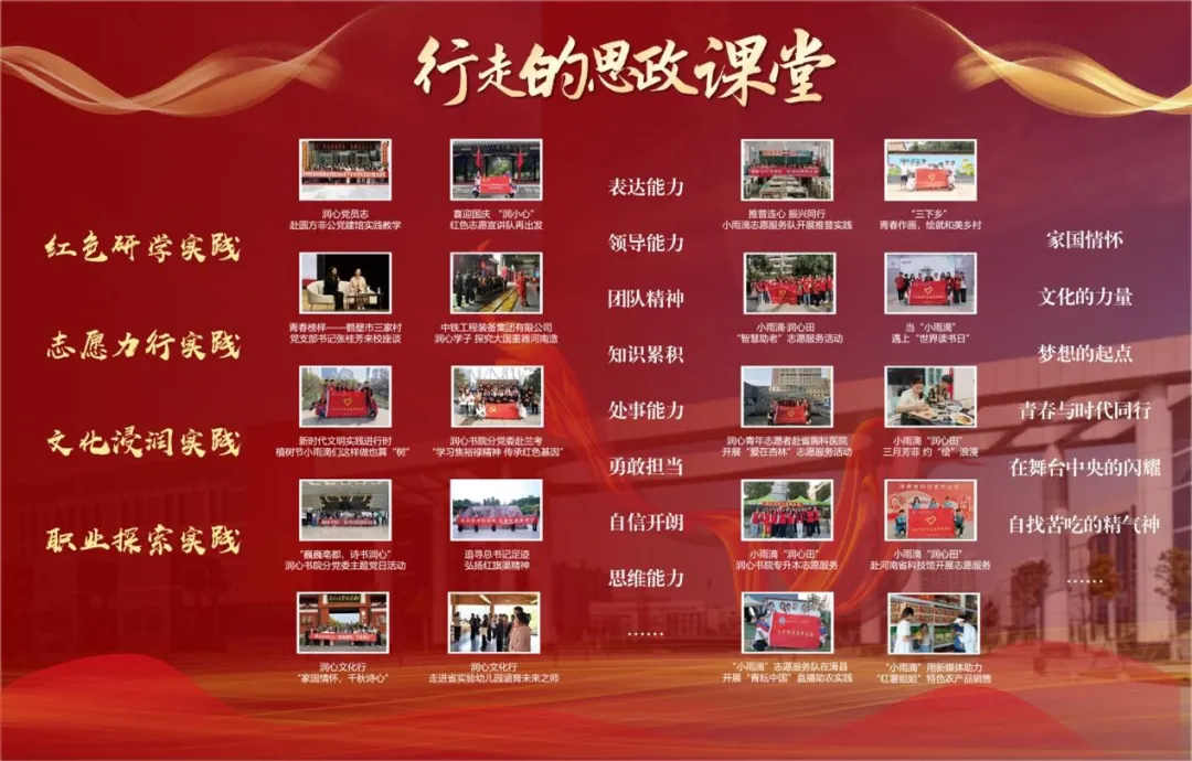学校团委作为学校共青团工作的领导核心,在共建“大思政”体系中扮演着规划者、协调者、推动者的关键角色。一、以重大任务锤炼组织协同力。通过承办省级高水平赛事,牵头组建跨部门工作专班,主动破解资源整合、跨部门协调难题,将办赛过程转化为检验和提升“大思政”工作协同效能、管理水平的实战平台,实现了“办好一次会,成就一批人”的育人目标,为体系共建提供了坚强的组织保障。二、以社会实践深化育人长效性。立足社会实践关键载体,连续八年深耕基层,建立稳定多元的实践基地网络,推动实践从“短期活动”向“长期共建”转变。通过聚焦国家战略设计主题、健全“动员—培训—实践—总结”全链条机制,引导学生将专业知识与服务社会深度融合,使基层一线成为最生动的“思政课堂”。三、以宣传矩阵拓展引领覆盖面。构建线上线下融合的青年思想引领宣传矩阵,围绕重大主题打造爆款内容,形成“活动开展+内容创作+全媒传播”闭环。同时,通过专题培训、复盘研讨建强宣传队伍,有效提升了思想政治引领的感染力、时代感和专业化水平。通过上述路径的探索与实践,学校团委成功打造了具有广泛影响力的志愿服务品牌,锤炼了能打硬仗的学生骨干队伍,建立了社会实践长效育人机制,学生社会责任感和实践能力显著增强,构建了高效协同的组织动员模式和立体化的宣传引领格局,为全校“大思政”工作奠定了坚实基础,营造了浓厚氛围。润心书院紧扣国家战略与河南省情,深入学习贯彻习近平总书记关于教育的重要论述,把思政小课堂同社会大课堂结合起来,将实践育人作为落实立德树人根本任务的重要载体,拓展“一站式”学生社区,培育时代新人的新场域,以“价值塑造、行为引领、能力提升”三位一体的人才培养理念的基础,凝聚立德树人之魂、夯实育人资源之基、丰富教学模式之形,拓展四维育人模块——以红色研学实践立心铸魂,以志愿力行实践淬炼担当,以文化浸润实践修身立德,以职业探索实践规划未来。项目团队曾获评全省“三下乡”社会实践活动优秀团队,先后入选河南省大学生“红旗渠精神代代传”志愿宣讲队、教育部“推普助力乡村振兴”全国大学生暑期社会实践志愿服务活动团队、共青团中央“七彩假期”志愿服务团,项目团队成员在河南省委教育工委、河南省教育厅主办的“壮丽河山说”主题教育实践活动中获得“人气之星奖”“优秀指导教师奖”。团队事迹曾被央视农业农村频道、新华社、中国青年报等国家级媒体关注和报道,获得其他校外媒体报道30余次。