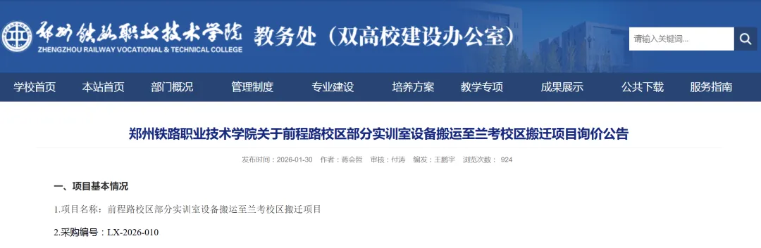 年初,郑州铁路职业技术学院发布《前程路校区部分实训室设备搬运至兰考校区搬迁项目询价公告》,拟将208件设备运至兰考过渡校区。过渡校区租用兰考三农职业学院场地,而新校区位于经开区东环路片区,规划433.8亩,围挡工程已启动。学校升级本科,就业率逼近100%