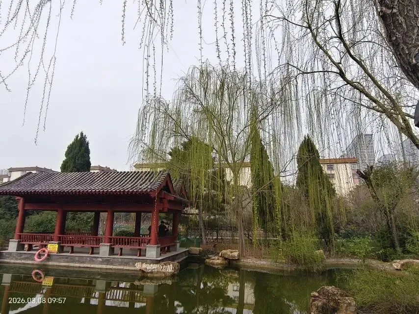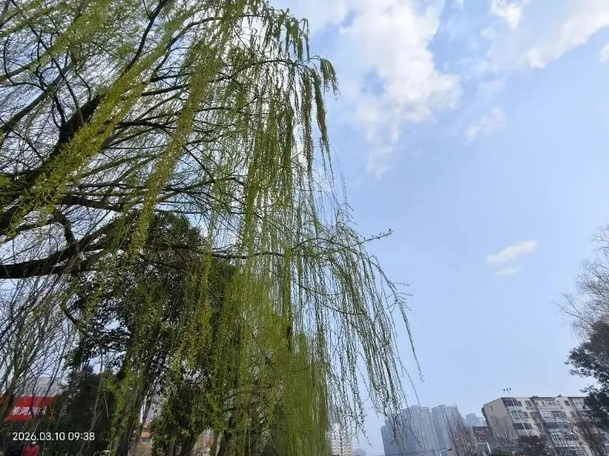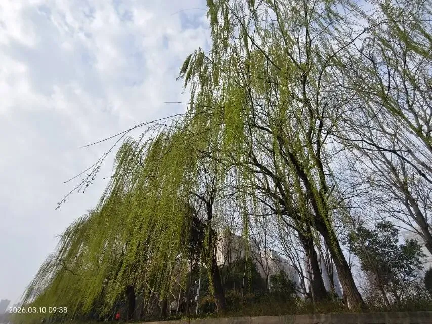 东风恰似巧手,风搓细柳,慢慢揉开枝头苞芽,吐露点点鹅黄嫩芽,嫩得透亮,鲜得可人,一眼望去尽是清新朝气;薄雾轻笼河堤,烟色朦胧间,柳丝相依相绕,枝蔓牵连,尽显缱绻温柔的情意,没有喧嚣纷扰,只剩春日独有的温婉缠绵,把郑州三月的清灵与柔美,尽数藏在了这一水一柳、一径一栏之间,成了独属于中原古城的春日清欢。