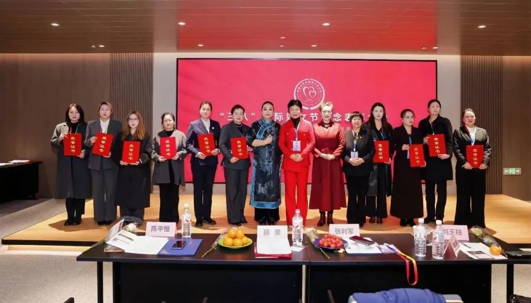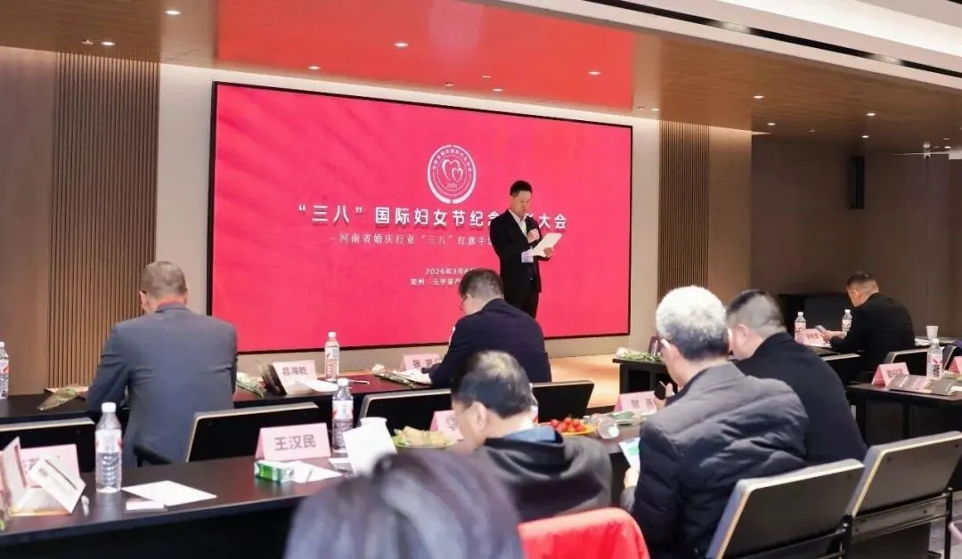 为庆祝“三八”国际妇女节,充分展现全省婚庆行业女性昂扬向上、奋发有为的精神风貌,3月8日,河南省婚庆服务行业协会庆祝第116个“三八”国际妇女节纪念表彰大会暨河南省婚庆行业“三八”红旗手选树表彰活动在郑州元宇宙产业园举行。 在荣誉表彰会上,河南省婚庆服务行业协会对获评的2025年度河南省婚庆行业三八红旗手、河南省婚庆行业三八红旗集体、河南省婚嫁产业优秀女企业家、河南省婚嫁产业最美女职工等先进个人和集体予以正式表彰,河南省妇女联合会妇女儿童发展中心副主任张凯,河南青少年素质发展中心副主任、河南省和谐妇女儿童社会工作服务中心副主任刘岚,全国三八红旗手、全国人大代表薛荣,著名戏曲表演艺术家边玉洁,河南省婚庆服务行业协会党支部书记、会长陈平恒等领导嘉宾分别为获奖代表颁发荣誉证书。其中,郑州东方影视化妆培训学校校长李园园荣获“2025年度河南省婚庆行业三八红旗手”、教研部主任康梦雨老师荣获“2025年度河南省婚嫁产业最美女职工”荣誉称号!李园园校长(第一排右四)荣获河南省婚庆行业三八红旗手 学校教职工此次获奖,是行业对我校教师队伍建设的充分肯定,彰显了东方影视化妆培训学校女教师爱岗敬业、立德树人、追求卓越的巾帼风采。学校将以此为契机,进一步激励全体教师坚守教育初心,深耕育人使命,助力学校教育事业高质量发展。