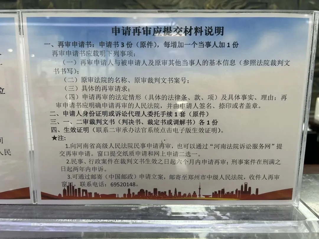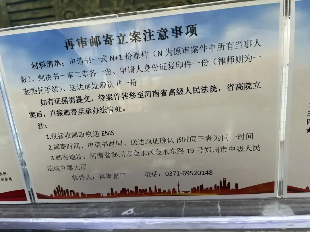 郑州市中级人民法院再审材料以及邮寄网上立案注意事项