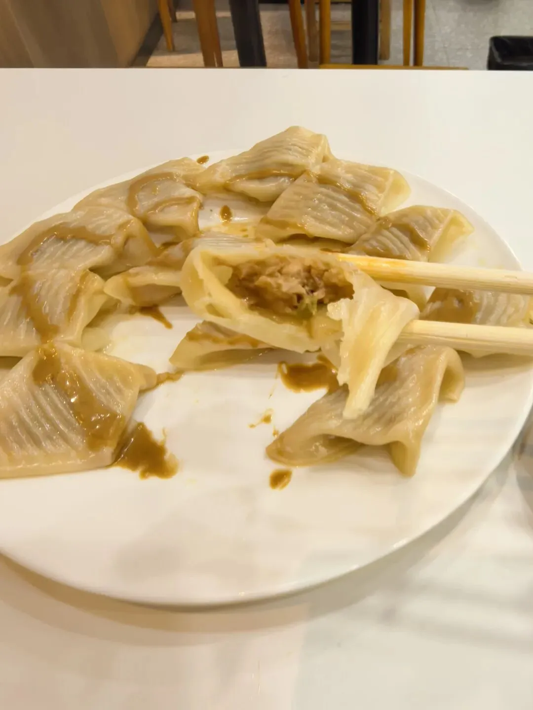 吃的时候,麻酱吃不太出来,饺子馅真的符合我这豫东人口味,跟妈妈拌的饺子馅味道一样,很家常。