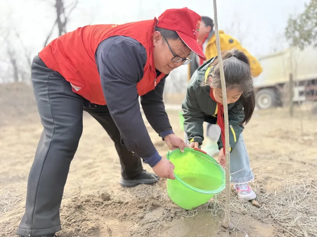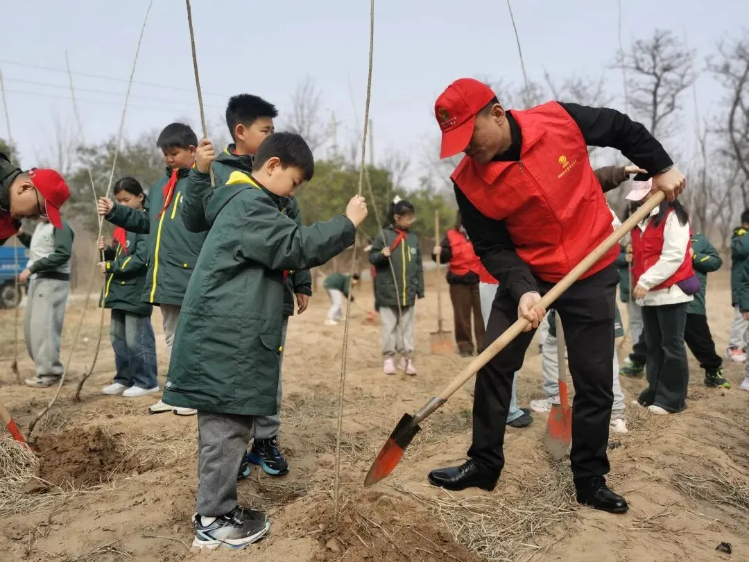 春回大地,草长莺飞,在一年一度的植树节来临之际,为深入践行绿色发展理念,引导青少年主动亲近自然、守护生态,郑州公交B5路青年文明号党团员志愿服务队联合郑州市中原区景悦城第一小学,共同走进郑州沙窝森林公园,开展“‘童’心同行 我为绿色充个‘植’”植树节主题实践活动,让孩子们在劳动中感悟成长,在实践中播种希望,让绿色种子扎根童心深处。