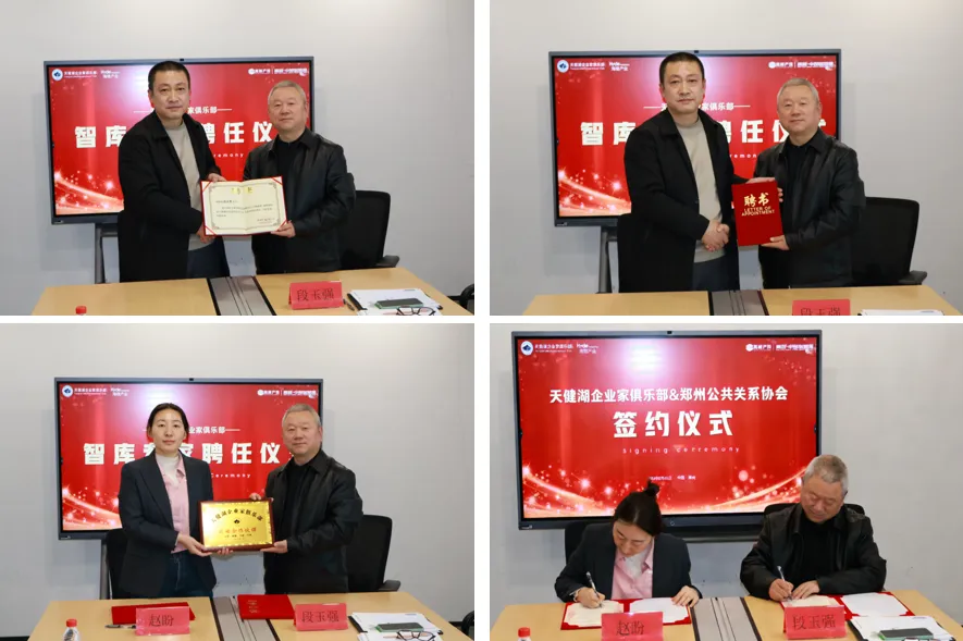 2026年2月5日,郑州市公共关系协会会长段玉强一行莅临交流,与天健湖企业家俱乐部举行战略合作签约仪式。双方围绕资源共享、平台共建、产业赋能等方向达成深度合作共识,并特聘段玉强会长为俱乐部智库导师,标志着双方协同发展进入全新阶段。