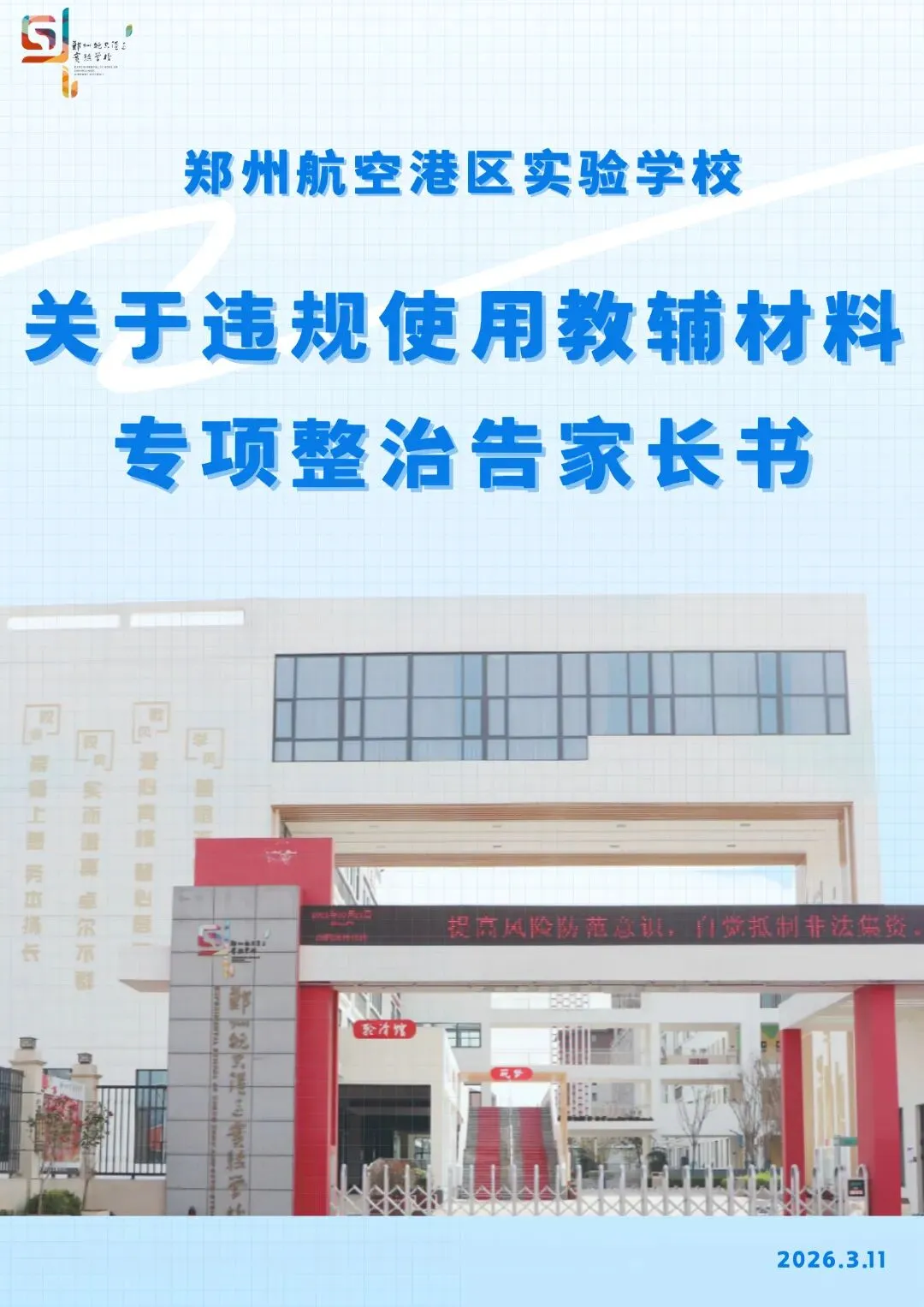 为进一步规范教辅材料征订使用工作,严格落实《河南省中小学教辅材料进校园管理“十严禁”》文件精神,根据郑州航空港区关于教辅材料征订使用的相关工作要求,结合我校实际情况,现就教辅材料征订使用及监督举报有关事项公告如下: