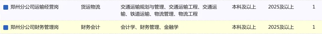 郑州分公司招聘岗位: