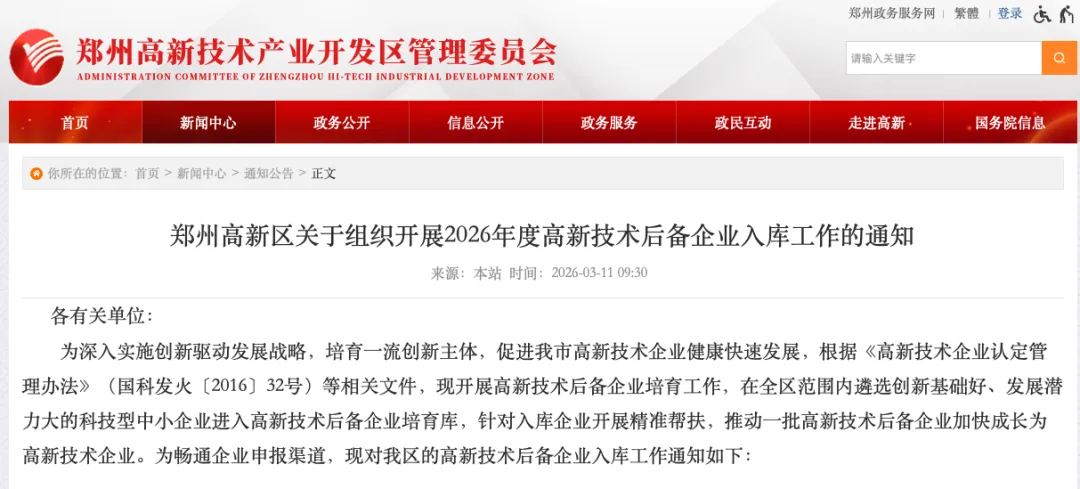 3.按照郑州市科技局要求,本年度高新技术后备企业分两批推荐,高新区的系统填报截止时间为:第一批:2026年4月2日;第二批:2025年6月1日。