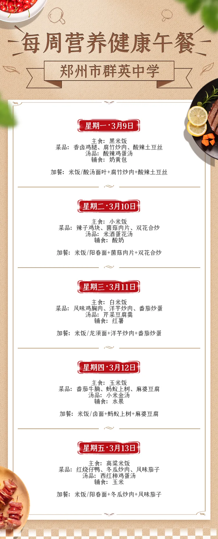 学校采用配餐形式,学生将餐盒带回班级用餐;每周会公布营养健康食谱,菜品丰富且营养均衡,同时定期邀请家长代表监督、评估供餐工作,全方位保障学生用餐的质量与安全。
