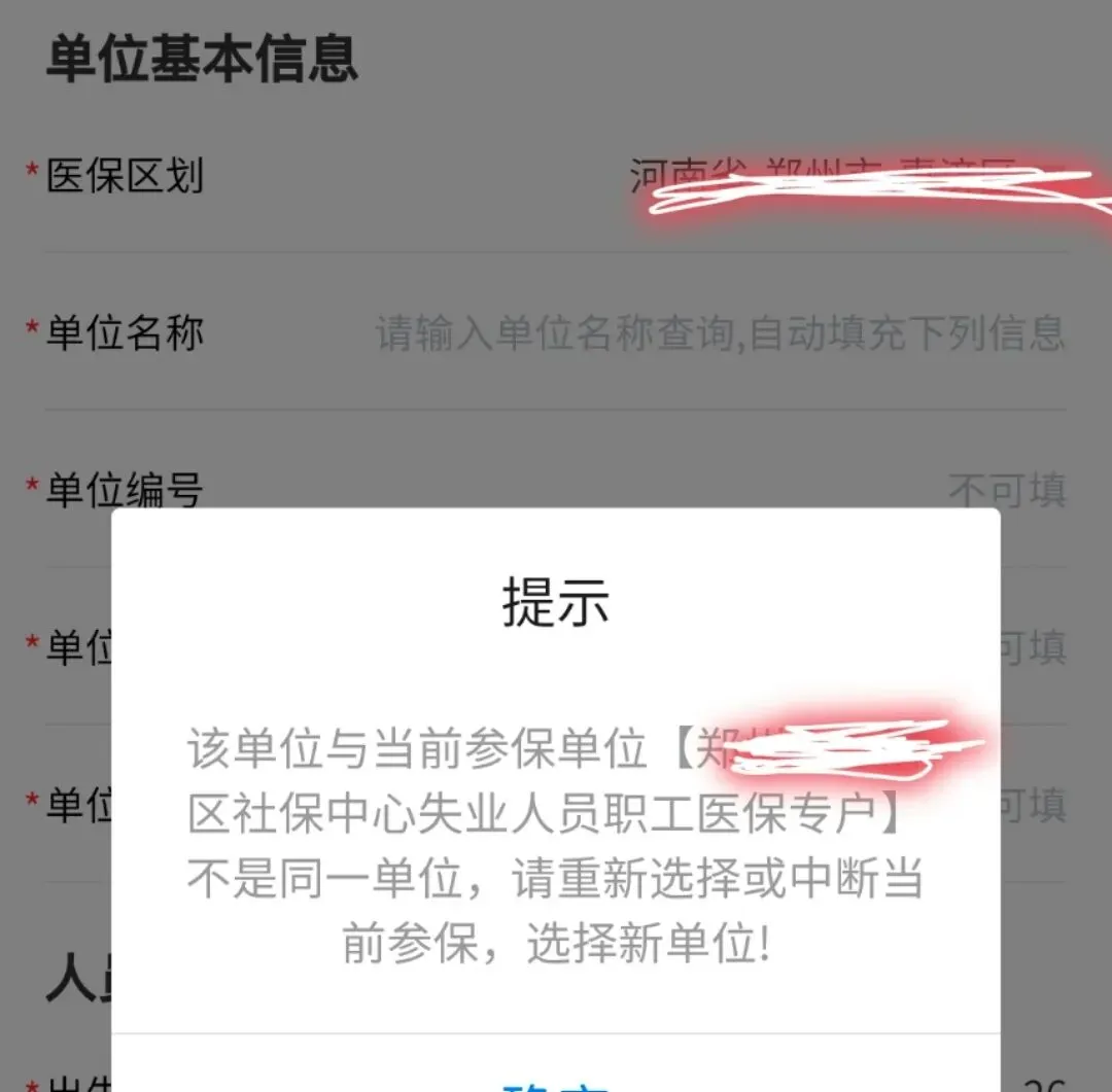 享受失业代缴医保的小伙伴,比如你3月代缴期满,代缴医保按说停保,但时间可能不确定代缴部门不会通知你,不停你没法登记的,先线上多试一下,只要能选中上图弹窗单位,就说明原代缴停保了,你可以申请登记保存成功了。